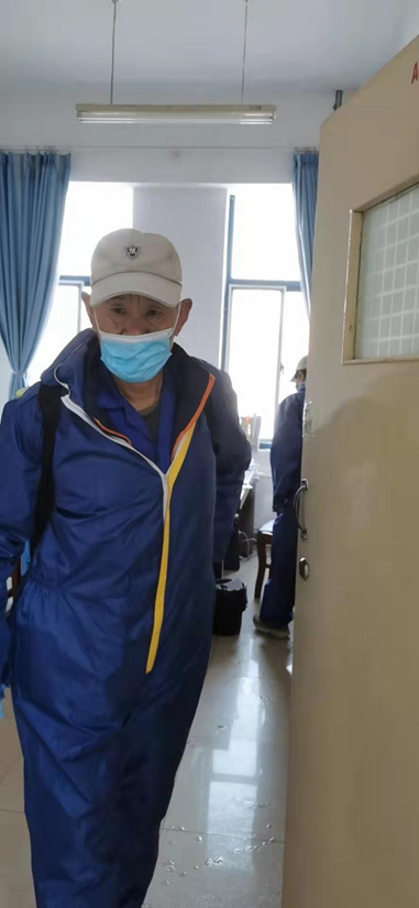 “没什么辛不辛苦,这都是我扛得起的责任!”作为年龄最大的员工,谭师傅每天五点起床开始一天的工作。他第一时间到达岗位,对观察点和学校的十二栋教学楼逐层进行消毒处理,人手缺半,工作加倍,他的干劲却没有丝毫减退。