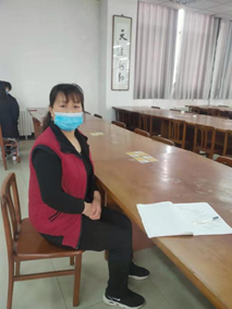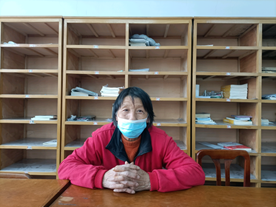 疫情期间,她坚守在自己的岗位,认真做好图书馆馆室、自习室、办公室以及各个会议室的消毒工作。晚间则睡在图书馆一楼的地板上。她和其他的保洁人员各自找了一个隔潮垫,简单铺上一层被子,便直接睡在上面。校领导们怕她们休息不好,又给她们送了一些被子。有时,夜里她也不能休息,还要在高速路口帮忙接收外来捐赠给学校的物资,或者是等待学校领导在深夜开完会议,再对会议室进行打扫、消毒。当有人担心她身体吃不消时,她却说,医护人员舍小家顾大家坚守在抗疫一线,学校领导为了学生们的安全坚守在会议室以及各个值班岗位上,同学们也努力地在宿舍进行网课学习,每个人都在为了与疫情战斗而努力,她会觉得自己累,只是在做好本职工作。