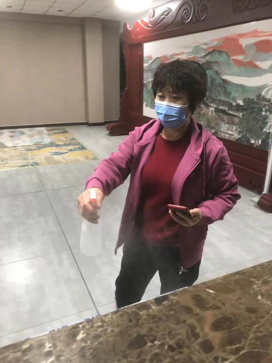3月9日凌晨2点多,接到学校的电话,何淑琴看了看屋里正在备战高考刚刚睡着的儿子,便小心翼翼地关上门,赶到了学校。她穿上防疫服,对图书馆的每个办公室、会议室、电梯还有门把手进行了全面消毒。