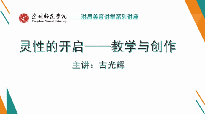 为增强学生审美感,提高艺术表现能力,帮助学生在创作中达到情景生动、意蕴健康的画面效果。5月4日晚,古光辉老师为师生带来了“洪昌美育讲堂系列讲座”第四讲:灵性的开启——教学与创作。讲座由美院绘画专业教研室主任黄政主持,共有在校教师、学生、社会人士等400人收听收看。