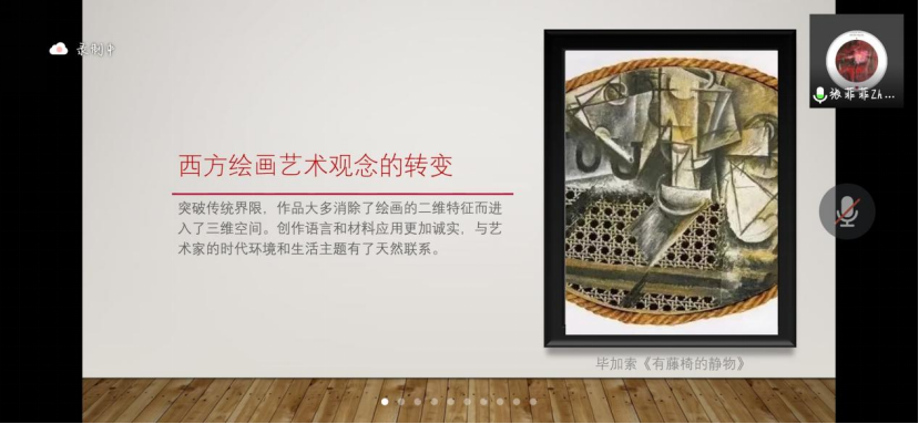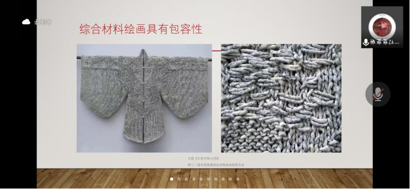 5月8日晚,美院教师张菲菲带来“洪昌美育讲堂系列讲座”第五讲——综合材料绘画漫谈。讲座由绘画专业教研室主任黄政主持,在校师生、社会人士等200余名艺术爱好者观看线上讲座。