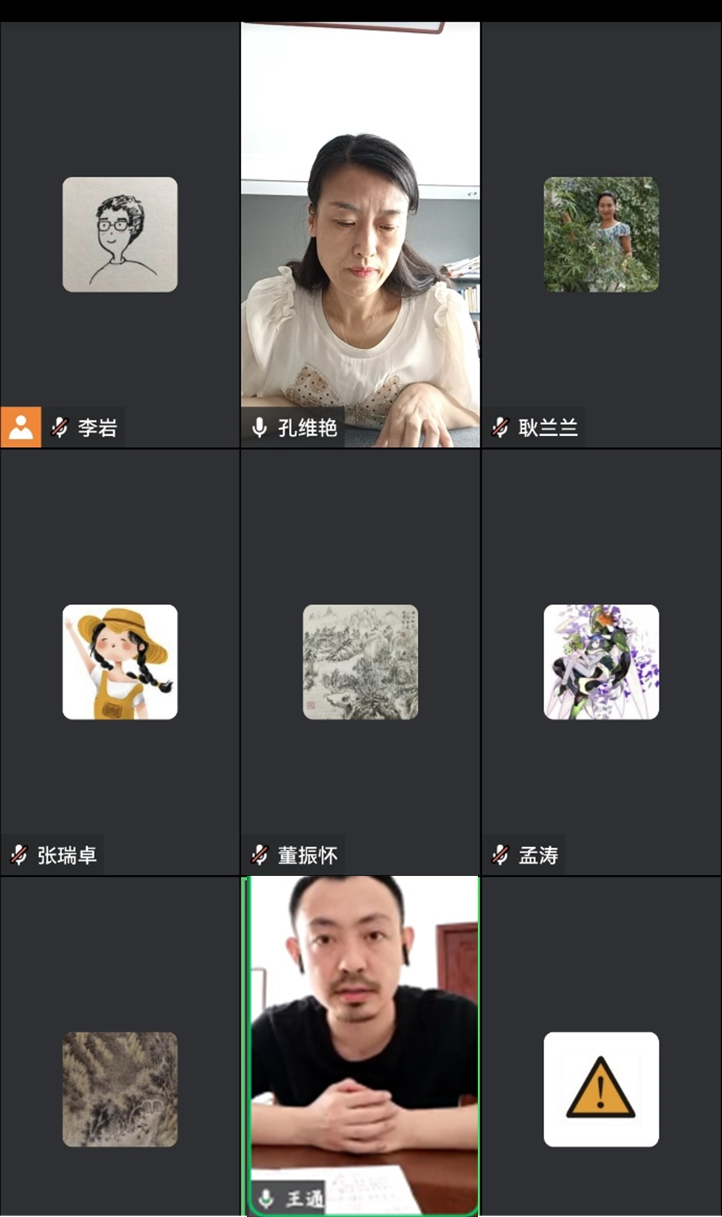近日,美术学院组织召开线上专题会议,深入学习、讨论“习近平给中国国家博物馆老专家的回信”,并以此为契机,共商、共探、共绘洪昌美术馆美育发展的新“蓝图”。会议由美术学院党总支书记王超主持,美术学院副院长孔维艳、王通、张倩,及各专业教研室主任及部分教师参与会议。