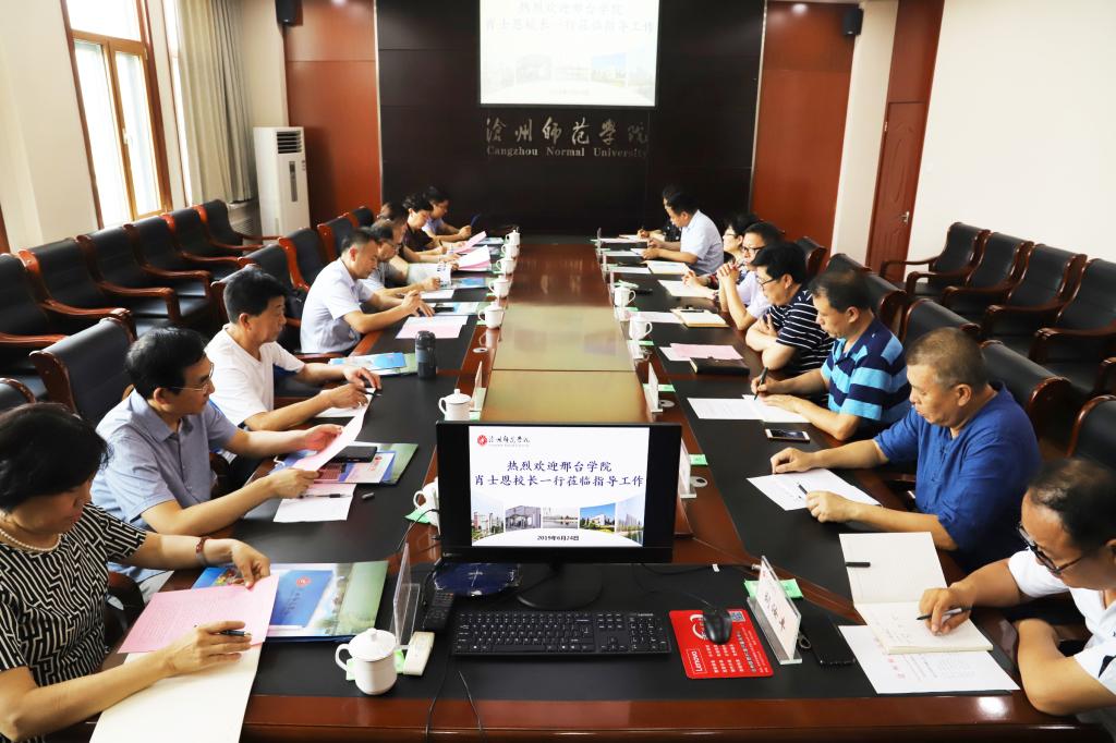 6月24日,邢台学院副校长肖士恩带领考察队一行8人来beat365指导交流,校党委常委、副校长周振平,校党委常委、副校长彭学君热情接待了来访人员,双方就教学管理、师范专业认证、师资队伍建设、学科专业发展等问题进行了深入交流。