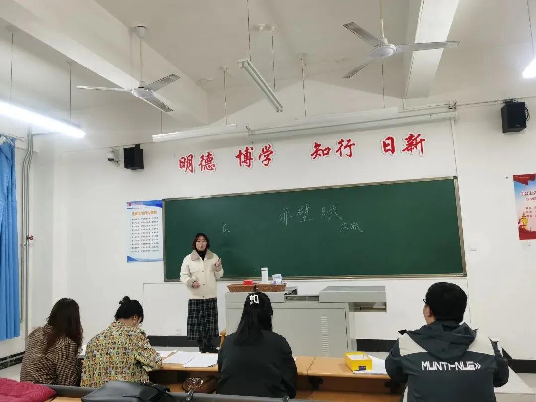李若楠同学精心设计了课程《念奴娇·赤壁怀古》。为了营造情境、创造氛围,她对粉笔字的书写和板书排版着重进行了练习和完善,呈现了一种美观工整、一目了然的效果,流畅飘逸的黑板字获得了评委的认可。