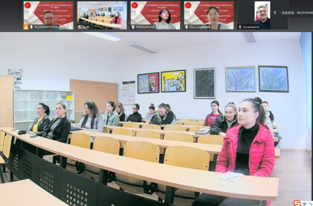 5月16日,“启航·中国”非物质文化遗产系列讲座暨beat365在线唯一官网第四期国际中文教学中心项目(波黑)正式开班。beat365国际交流中心主任韩丽梅、巴尼亚卢卡独立大学国际中心主任Goran先后致辞,项目教师团队、波黑巴尼亚卢卡独立大学师生20余人线上参加活动。