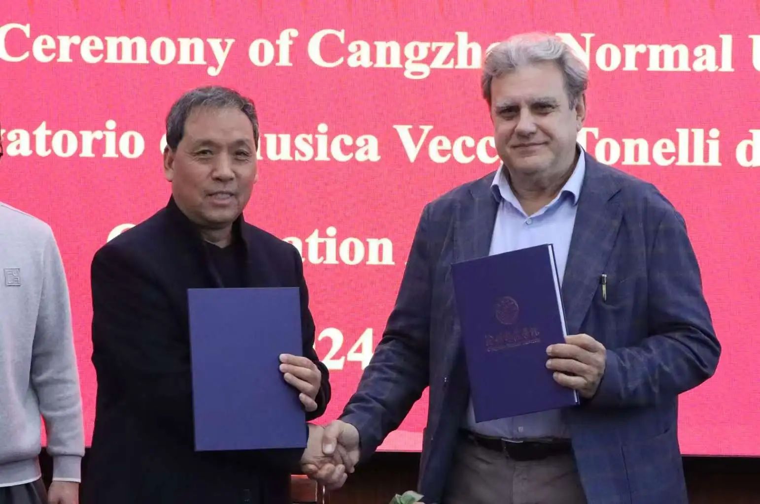 范小振和朱塞佩·法乌斯托·莫杜尼奥分别代表双方签署两校友好合作意向书。双方围绕教育合作、师生交流、课程资源共享等方面展开深入探讨,双方均表示将进一步加强交流,加深友谊,加大合作,实现共赢发展。
