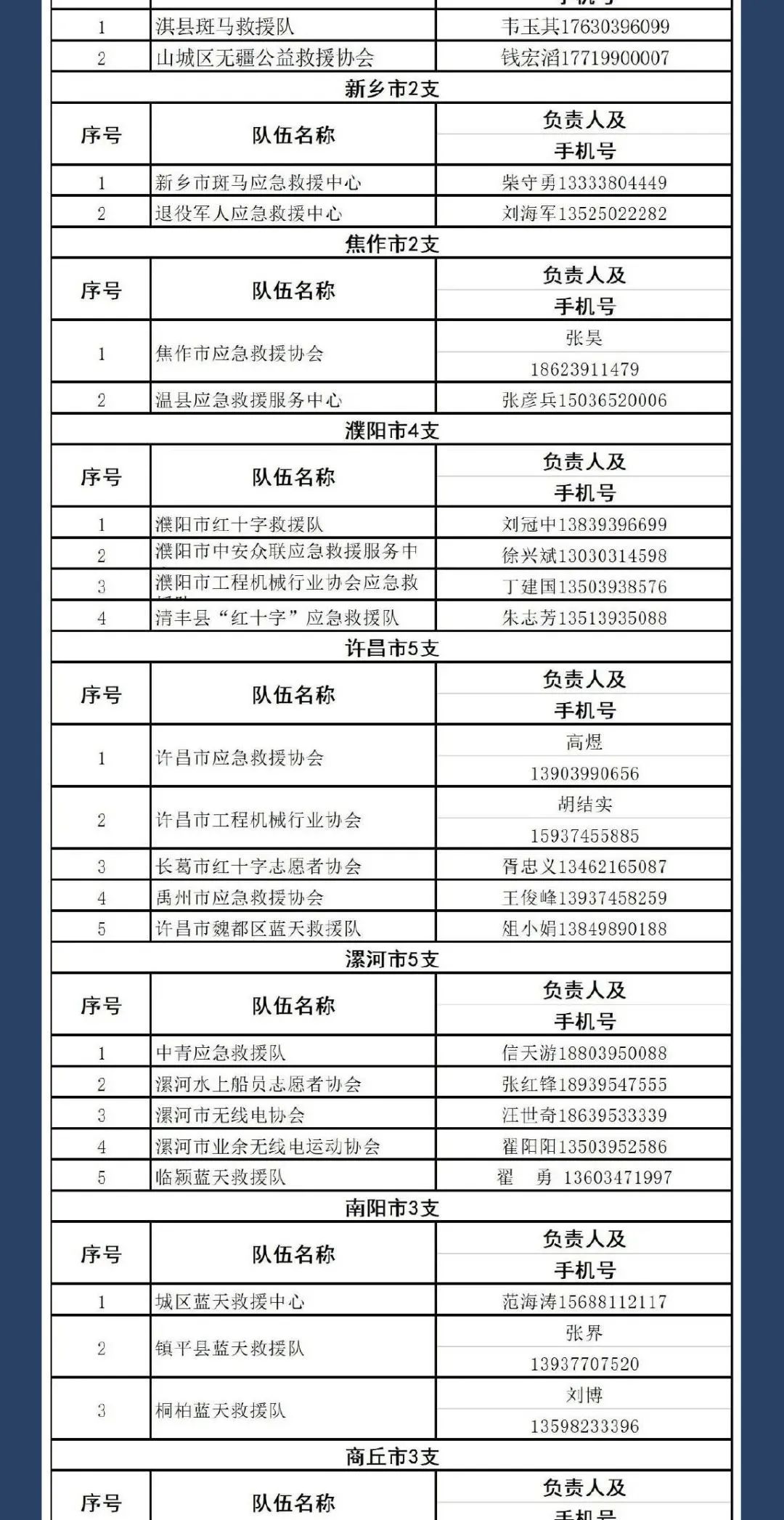 河南全省救援电话汇总