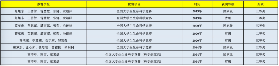 全国大学生生命科学竞赛获奖