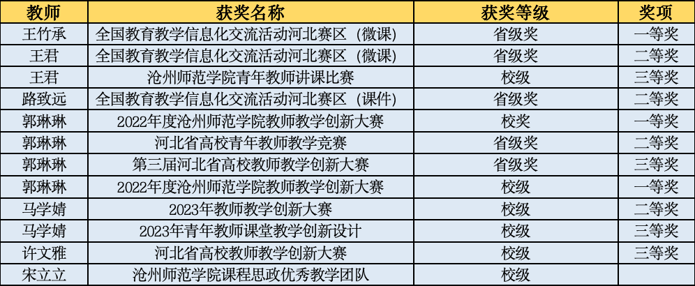 教学竞赛获奖情况