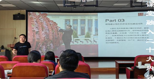 商学院特色文化建设中,以党建铸魂,充分发挥党组织在高校育人体系中的引领作用,不断凸显学院特色,实现“学-思-悟-践-行”贯通。