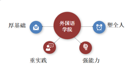 外国语学院坚持立德树人根本任务,以德为首,以智为轴,以社会需求为导向,以职业发展为统领,通过“四课堂联动”的创新培养体系实现行业、专业、学业、就业“四业贯通”,形成厚基础、重实践、强能力、塑全人的办学和育人特色。