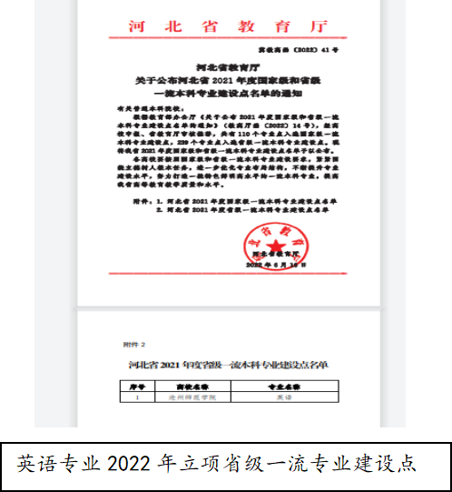 学院聚焦“立德树人”,既注重学科育人,又注重实践育人;既注重能力培养,又注重社会服务;既注重家国情怀,又注重国际视野;既注重专业发展,又注重“全人”教育,取得了人才培养满意度和社会声誉双高的育人成效。用人单位满意度98%以上,近三年就业率平均为95.16%,专业对口率平均为61.3%,沧州地区、省内、及京津就业率分别为14.4%、64.8%和8.9%,高质量就业率平均为79.6%。