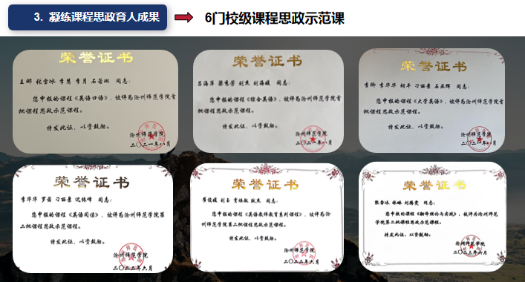目前,学院已建成“英语口语”等6门校级课程思政示范课;开展省级课程思政教、科研项目15项,市级5项,校级1项,发表相关论文15篇,出版专著1本。